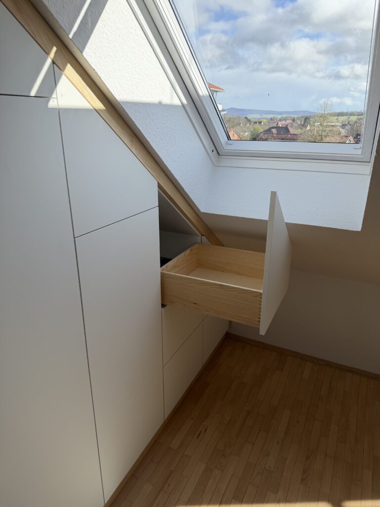 Ich entwerfe und baue Möbel und Raumlösungen, die wirklich passen: zu den Menschen, dem Alltag, dem Raum. Nachhaltige Materialien, handwerkliche Qualität und persönlicher Austausch stehen dabei für mich im Mittelpunkt.